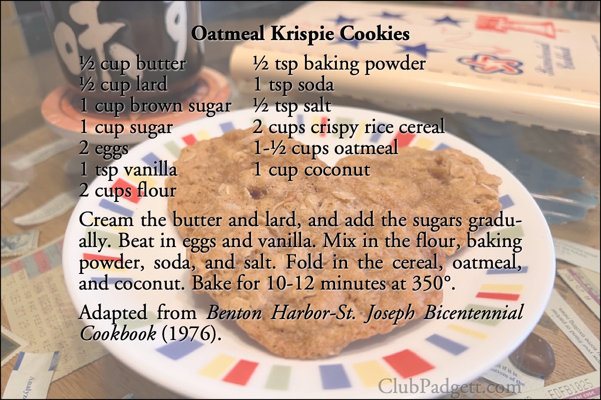 I’ve come to enjoy adding crunchy bits to my cookies. Potato chips, caramelized sugar, and, of course, breakfast cereal! These are from Jan Pintcke, of Harbert, Michigan, and they make a great bar cookie as well.
